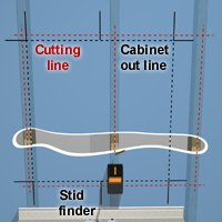 A recessed medicine cabinet needs to be anchored inside the wall to a rectangle of framing, the center of which must be clear of obstructions.